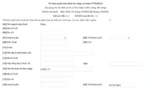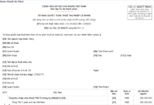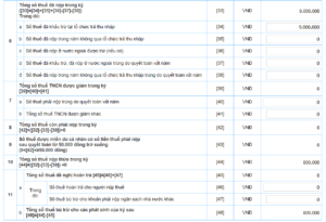 Ví dụ: Năm 2022, Dương Văn A làm công ty X từ tháng 1 đến tháng 4 có tổng thu nhập chịu thuế theo chứng từ là 50.000.000 đồng, làm công ty Y từ tháng 5 đến tháng 12 có tổng thu nhập chịu thuế theo chứng từ là 200.000.000 đồng. Như vậy tại chỉ tiêu [21], anh A sẽ nhập 250.000.000 đồng.