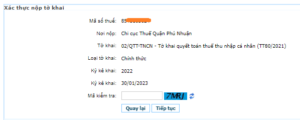 Bước 8: Cầm theo CMND/CCCD, chứng từ khấu trừ thuế thuế, Tờ khai thuế vừa in đến nộp tại Bộ phận một cửa của Cơ quan thuế đã nộp tờ khai.