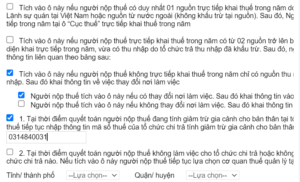 Tùy theo trường hợp của người nộp thuế mà tích chọn mục phù hợp.